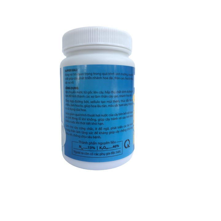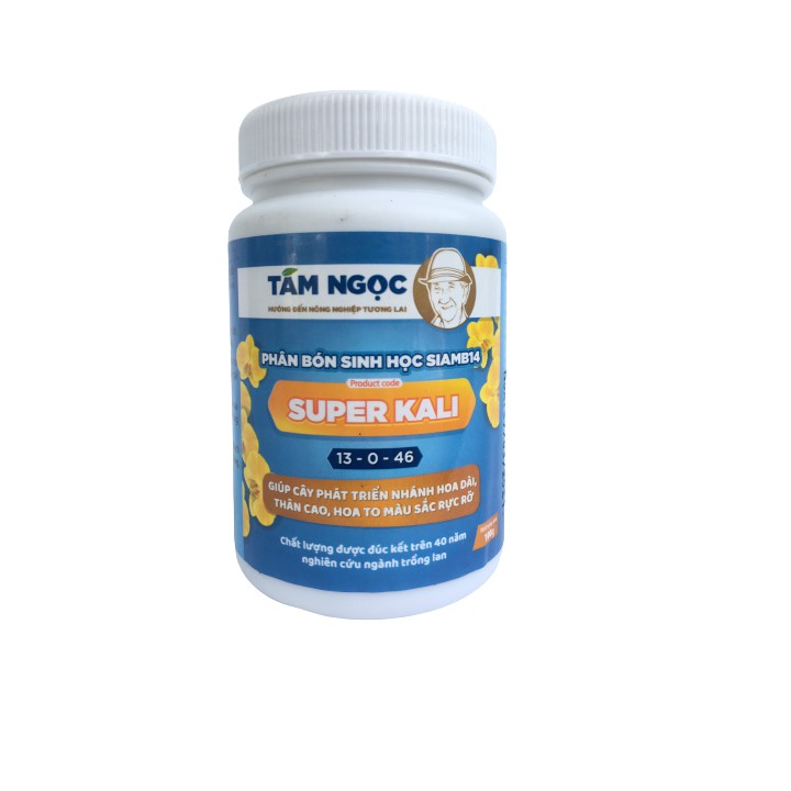 Phân bón vi lượng siamb3 Super Kali 13-0-46 Tám Ngọc lọ 100gGiúp cây phát triển nhánh hoa dài, thân cao, hoa to màu sắc rực rỡ.