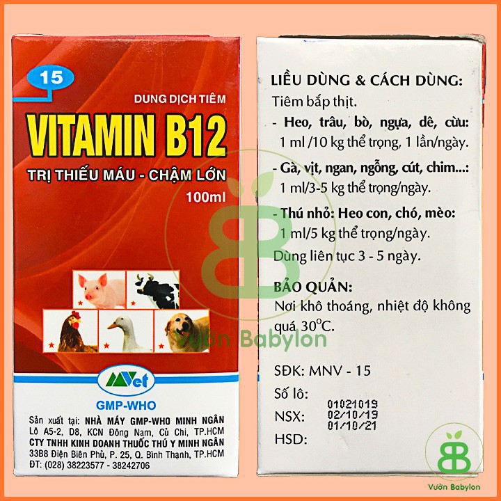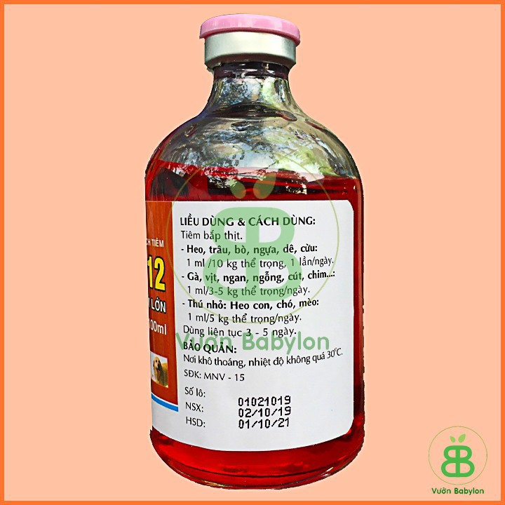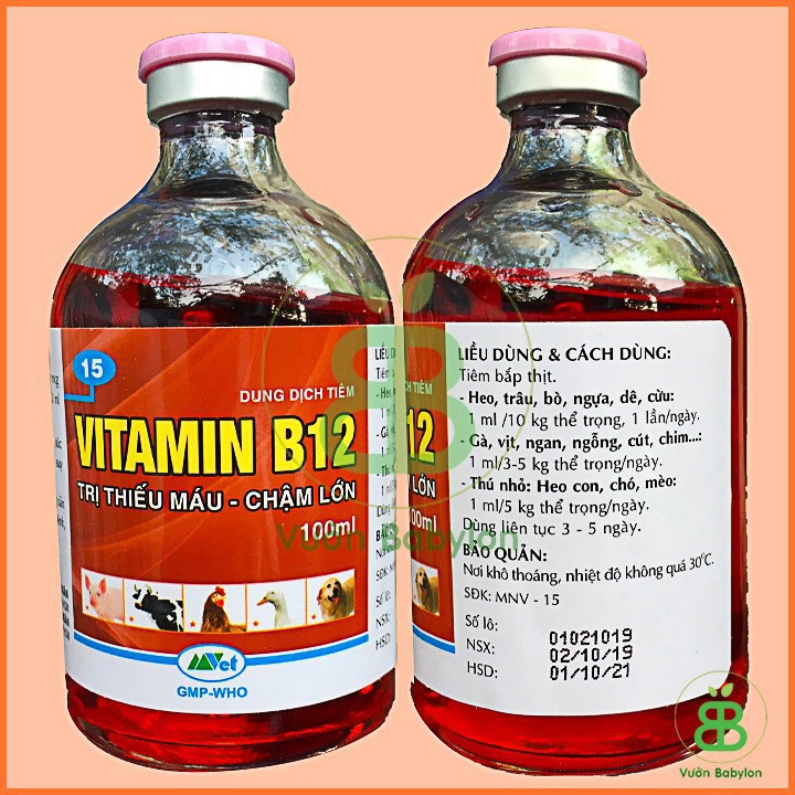 • Chống sốc cho cây chai 50ml:Vitamin B12 là dòng thuốc thú y nên rất an toàn cho người và gia súc
