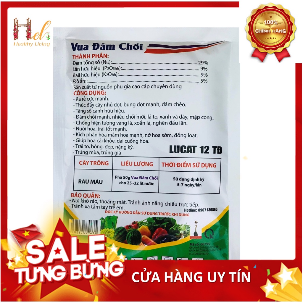 CAM KẾT HÀNG CHÍNH HÃNG, HOÀN 100% TIỀN NẾU SẢN PHẨM NHẬN ĐƯỢC KHÁC BAO BÌ QUẢNG CÁOPhân bón Vua Đâm Chồi giúp cây ra đọt đều, xanh lá, Vọt Đọt Thần Tốc đâm chồi mạnh, chống nghẽn đầu lân, vươn đọt cao