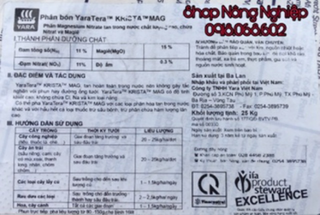 🌹Phân bón bổ sung Đạm và Magie Yara Tera Krista MAG🌹💧💧 Magnesium nitrate tan trong nước chất lượng cao chứa nitrate và magie