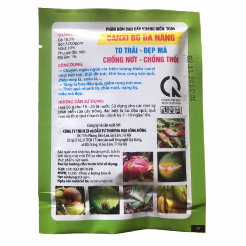 Giới thiệu Phân Canxi Bo Đa Năng Chống Nứt, Chống Thối, Tăng Đậu Quả Cho Cây Ăn Quả, Hoa, Ra Màu gói 50g