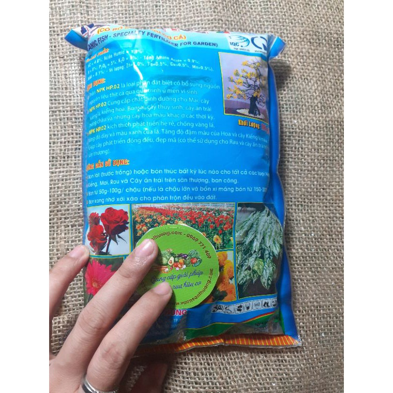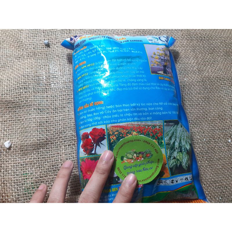 Phân NPK HP.02 là loại phân đặc biệt có bổ sung nguồn nguyên liệu thịt cá qua quá trình ủ men vi sinh. Cung cấp dinh dưỡng cho cây hoa kiểng, bonsai, cây thuỷ sinh, cây an trái, cây hoa màu ở
