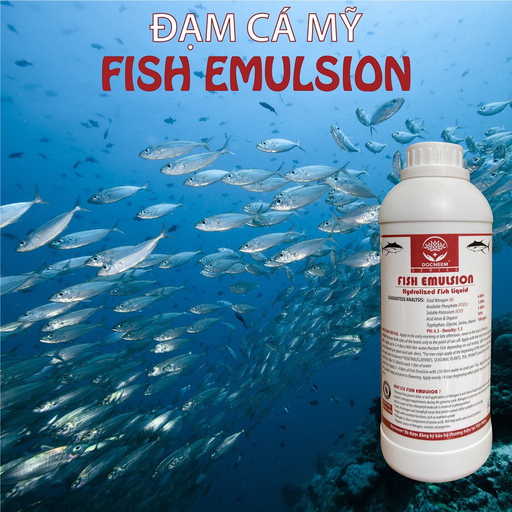 Phân đạm cá Docneem, phân cá Fish Emulsion (1 lít) hữu cơ cho hoa hồng, rau sạch, hoa, cây cảnh trong nhà ngoài trời
