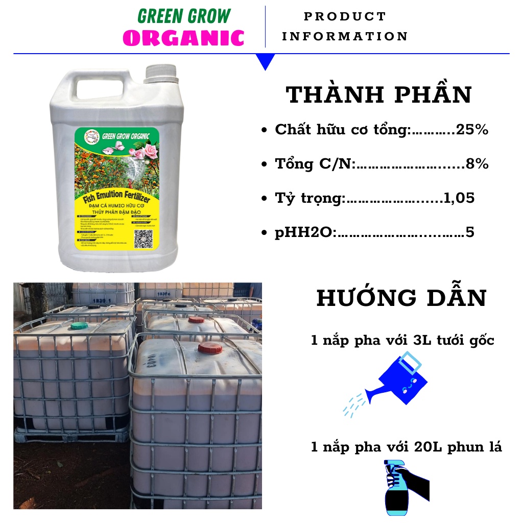 Phân đạm cá Fish Emulsion Green Grow Organic, can 5 lít, đạm cá hữu cơ kích rễ mạnh to cành MS134💥ƯU ĐIỂM NỔI BẬT : Hiệu quả cao, không mùi, tiết kiệm chi phí cực lớn💥