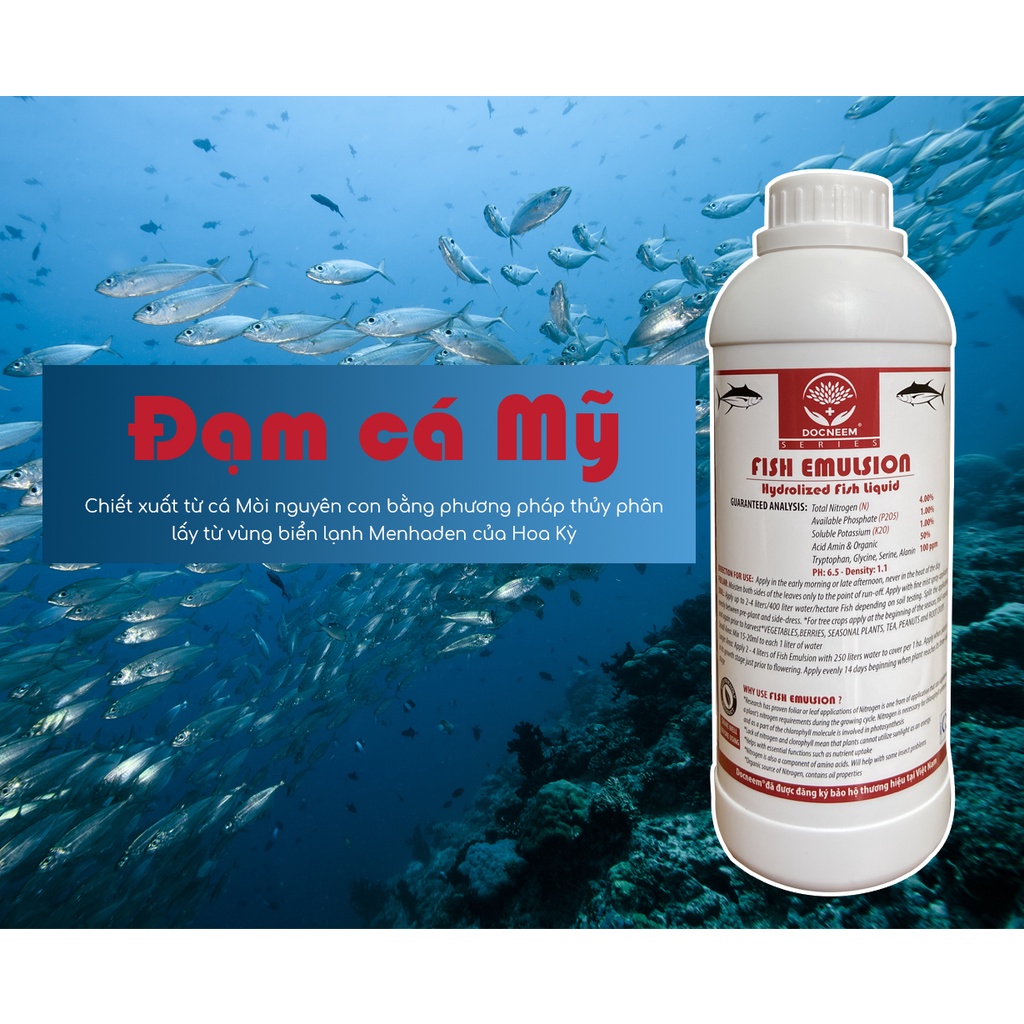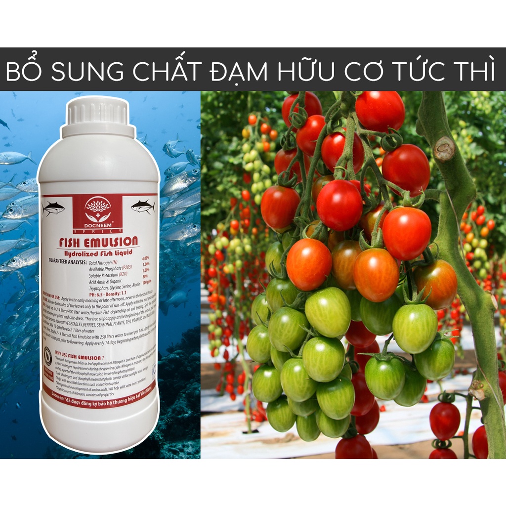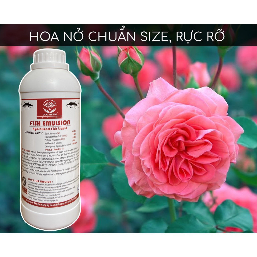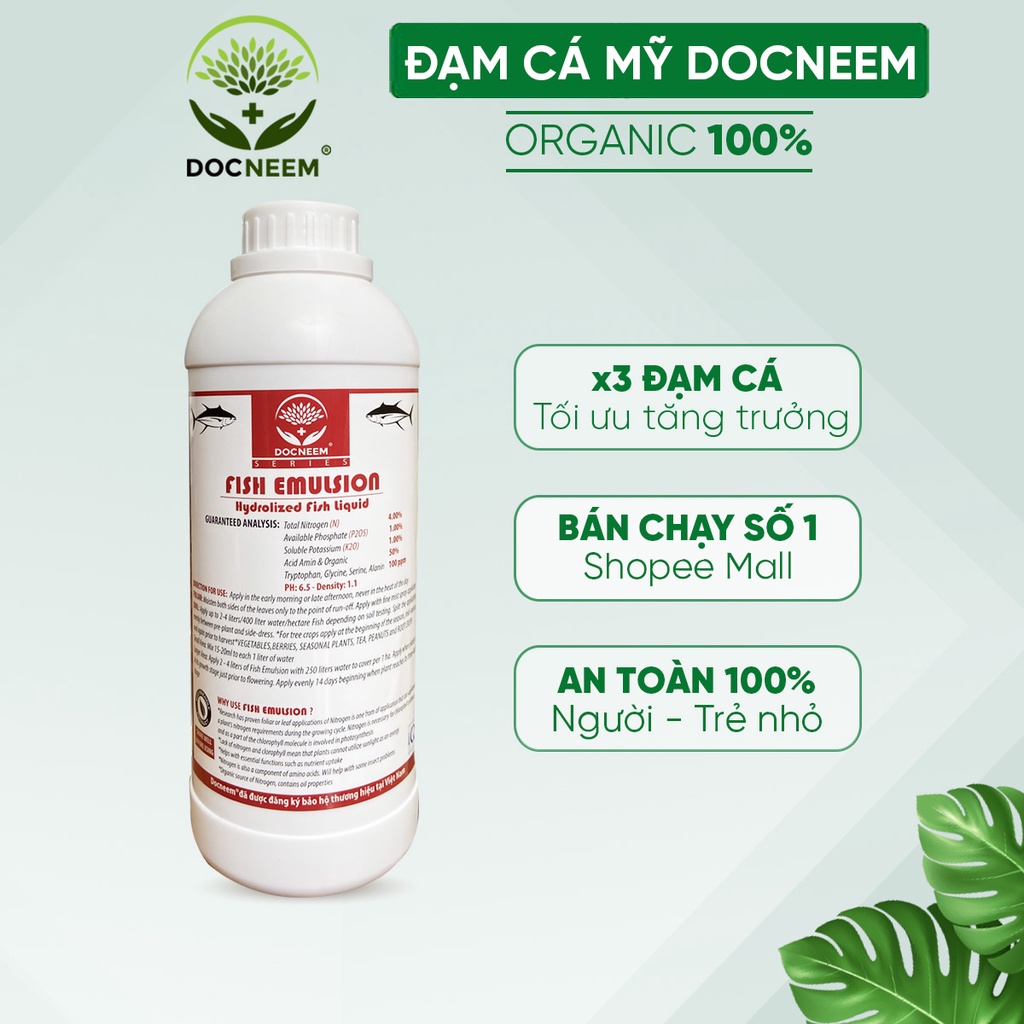 Giới thiệu Phân đạm cá Fish Emulsion DOCNEEM, chai 1 lít, hữu cơ cho hoa hồng, hoa lan, rau sạch, hoa,cây cảnh, chính hãng