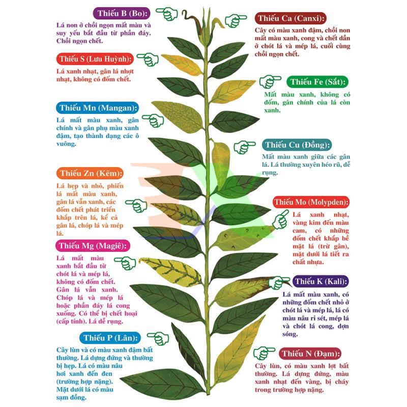 Sự thiếu hụt đạm (N) trong cây trồng thể hiện rõ nét.