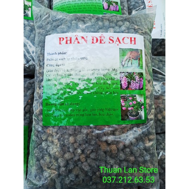 Phân Dê Sạch Đã Qua Xử Lý gói 1kgPhân dê lớn như hạt đậu nành, có hình elip. Phân dê được lên men ủ cho ra loại phân hữu cơ cực tốt. Phân dê được sử dụng làm phân bón để cải tạo đất, làm tơi xốp đất và có giá trị kinh tế tốt. Phân dê được sử dụng để trồng hoa, cỏ, và đặc biệt rất tốt cho cây lan và hồng.