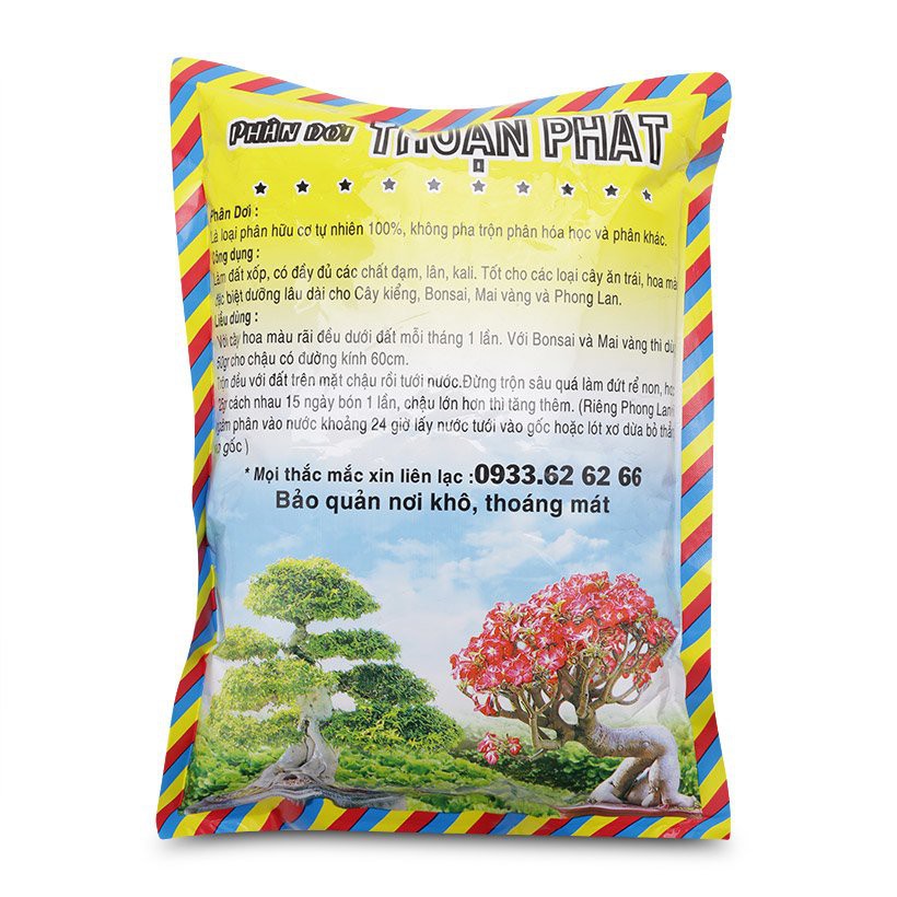 Là loại phân hữu cơ tự nhiên 100%, không pha trộn phân hóa học và phân khácLàm đất xốp, có đầy đủ các chất đạm, lân, kali. Tốt cho các loại cây hoa màu, cây kiểng đặc biệt dưỡng lâu dài cho bonsai, mai vàng và phong lan