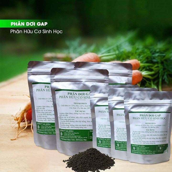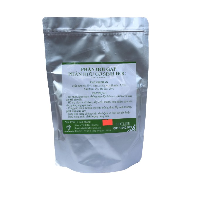 Thành phần: Chất hữu cơ 23%, Nts 2.8%, Axit Humic 3.5%, Cacbon 2%, Độ ẩm 20%