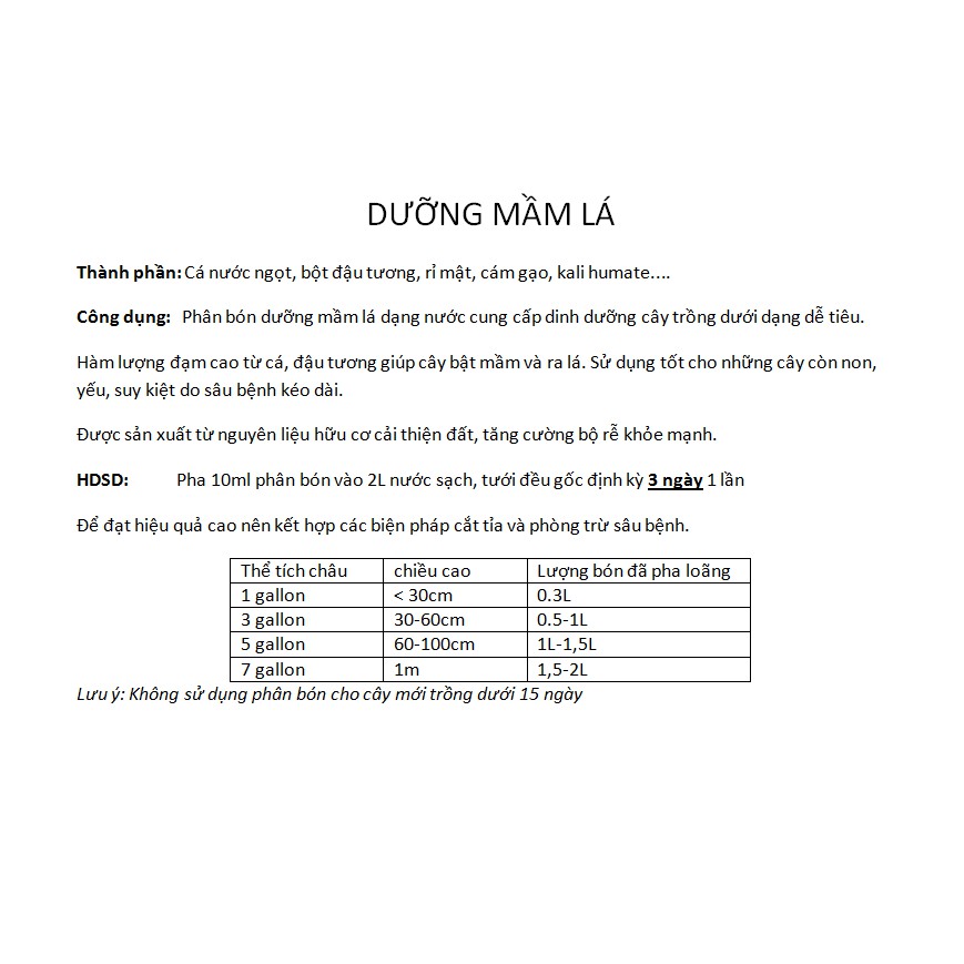 Nhà cửa & Đời sống > Làm vườn > Phân bón || PHÂN DƯỠNG MẦM LÁ 1L-Dùng để kích thích ra nụ, đâm chồi nảy mầm tăng trưởng giúp cây hồng phát triển tươi tốt, mạnh khỏeCòn hàng
