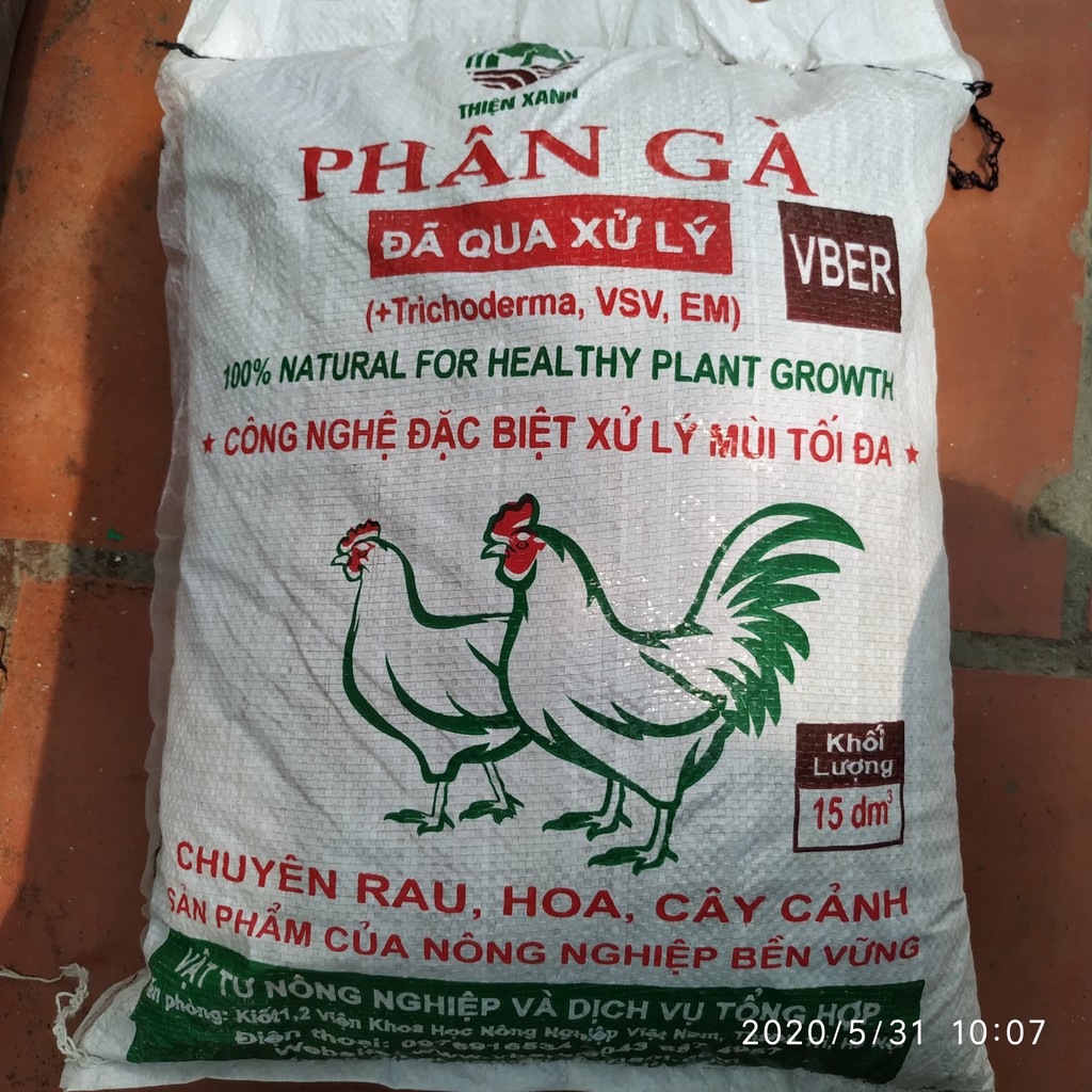 Nhà cửa & Đời sống > Làm vườn > Phân bón || Phân gà Vber đã qua xử lí ( + Trichoderma, VSV, EM) bao 15dm3Còn hàng