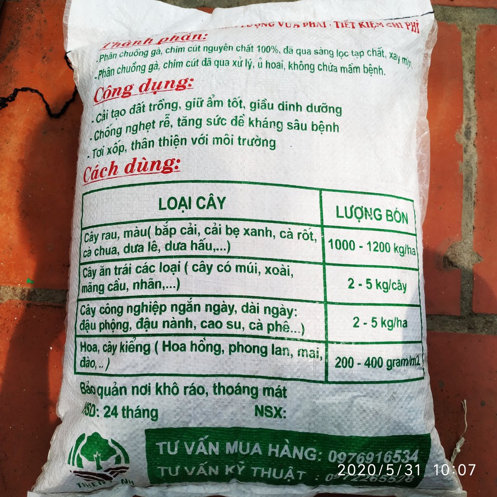 Thành phần:- Phân chuồng gà, chim cút nguyên chất 100% đã qua sàng lọc tạp chất, say mịn,..