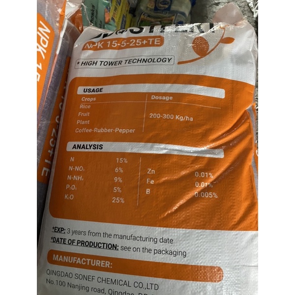 -Phân bón 15-5-25+ TE là phân bón nhập khẩu từ châu âu- Hướng dẫn sử dụng; dùng cho hoa hồng và các loại hoa quanh nhà , cây ăn quả , bón 20-50g cho 1 chậu ( tuỳ vào kích cỡ) hoặc 100-500g cho 1 gốc cây ăn trái