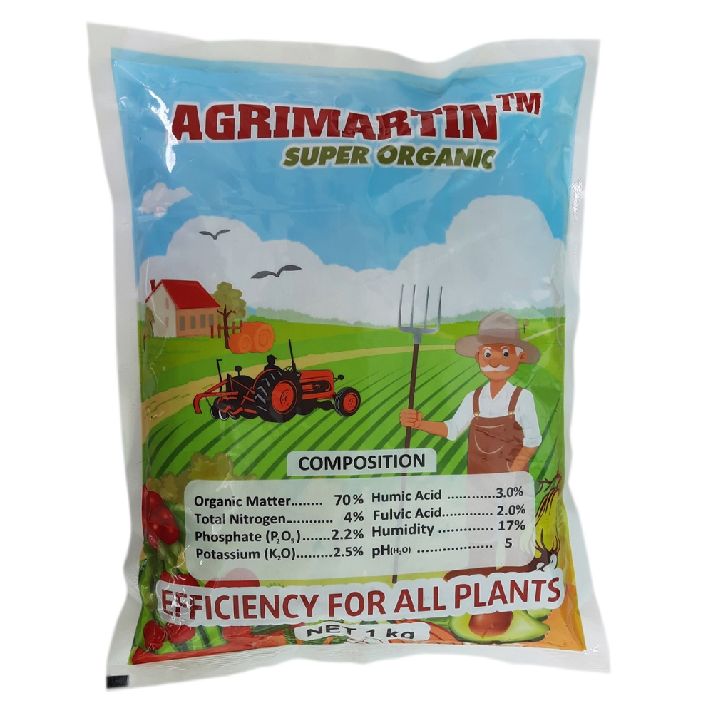 Sản phẩm phân bón hữu cơ cao cấp Agrimartin được sản xuất từ nội tạng gà có chứa acid humic và fulvic với công nghệ sản xuất của Bỉ. Đây là dòng sản phẩm cung cấp nguồn chất hữu cơ thiết yếu cho rau sạch và hoa kiểng lên đến 72%. Phân bón hữu cơ agrimartin giúp cây sinh trưởng và phát triển tốt, tăng khả năng kháng sâu bệnh hại.Thành phần:
