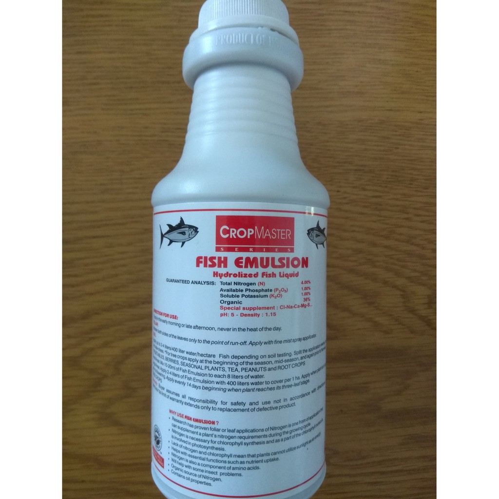 Fish Emulsion là chế phẩm hữu cơ bón qua lá tinh khiết đậm đặc, được chiết xuất từ cá Mồi nguyên con bằng phương pháp thuỷ phân lấy từ vùng biển lạnh Menhaden của Hoa Kỳ, đặc biệt bổ sung hữu cơ - trung vi lượng Cl, Na, Ca, Mg, S…giúp cây hấp thụ tức thì chất đạm hữu cơ. Cây lớn nhanh, lá xanh dày. Gia tăng năng suất và chất lượng sản phẩm sau thu hoạch. Tăng chất đề kháng thích ứng với đất bị pha cát, bạc màu.