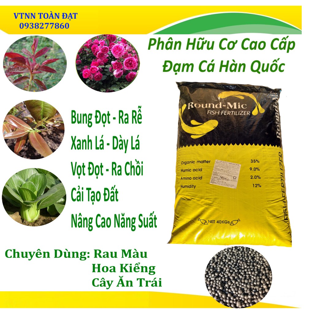 Giới thiệu Phân hữu cơ đạm cá hồi Hàn Quốc (500g), Phân bón sinh học Round Mic, Humic cao giúp ra rễ nhanh và mạnh