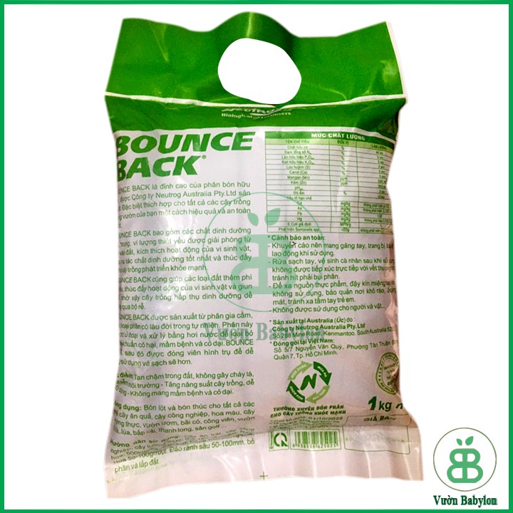 Vườn Babylon Xin Chào Qúy Khách!Phân Hữu Cơ Đậm Đặc Dạng Viên Bounce Back 1KG