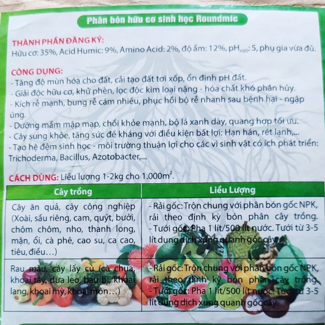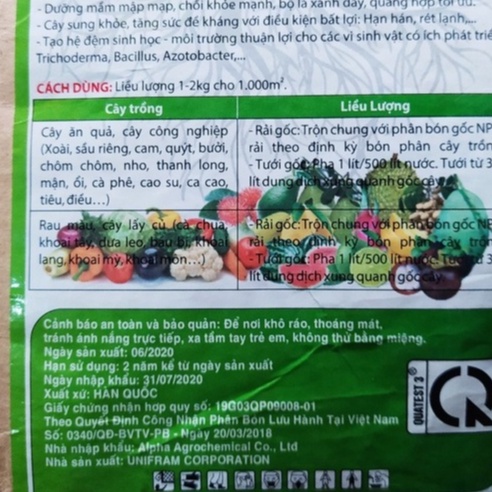 Cách dùng: pha 1kg với 500 lít nước, tưới quanh cây, tưới lặp lại sau 7 - 10 ngày 1 lần