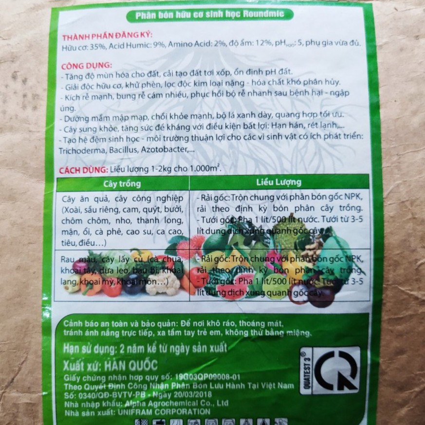 Cách dùng: pha 1kg với 500 lít nước, tưới quanh cây, tưới lặp lại sau 7 - 10 ngày 1 lần
