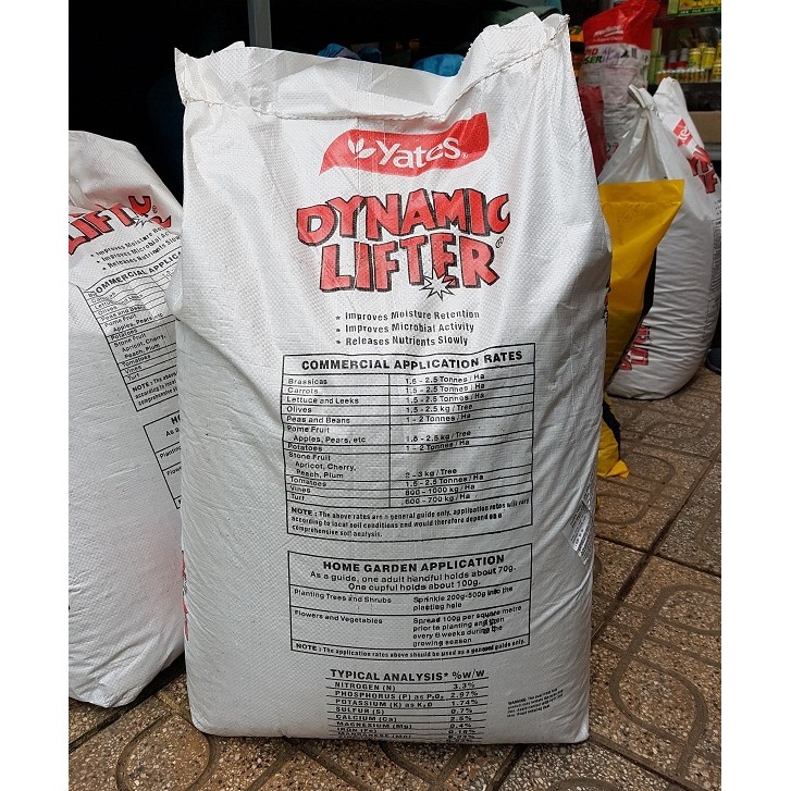 - Yate Dynamic Lifter là phân hữu cơ phổ biến nhất ở Úc.Sản xuất từ phân gà đã được cô đặc và xử lý ở nhiệt độ cao nhằm tiêu diệt mầm móng cỏ dại trong nguồn phân chuồng