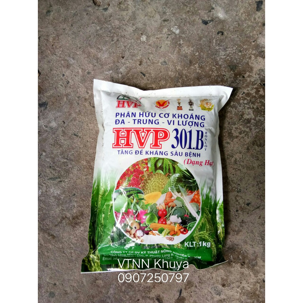 Phân HVP 301.BR hữu cơ cao cấpThành phần: Hữu cơ 20%, N - P2O5 - K2O: 3-2-2 (%), CaO: 0,2%, MgO: 0,1% Fe: 1.000ppm, Cu: 800ppm, Zn: 700ppm, Mn: 450ppm, B: 250ppm, Độ ẩm: 20%