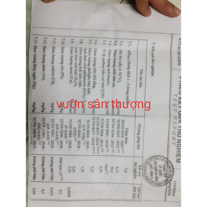 Chất hữu cơ-80%; Nts–5,21%; P2O5hh–1,91%; K2Ohh–2,63%; Tỷ lệ C/N–12; Axit Humic–10,6%; Ca–7,73%; pHH2O–5; Độ ẩm<30%.