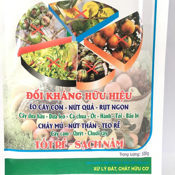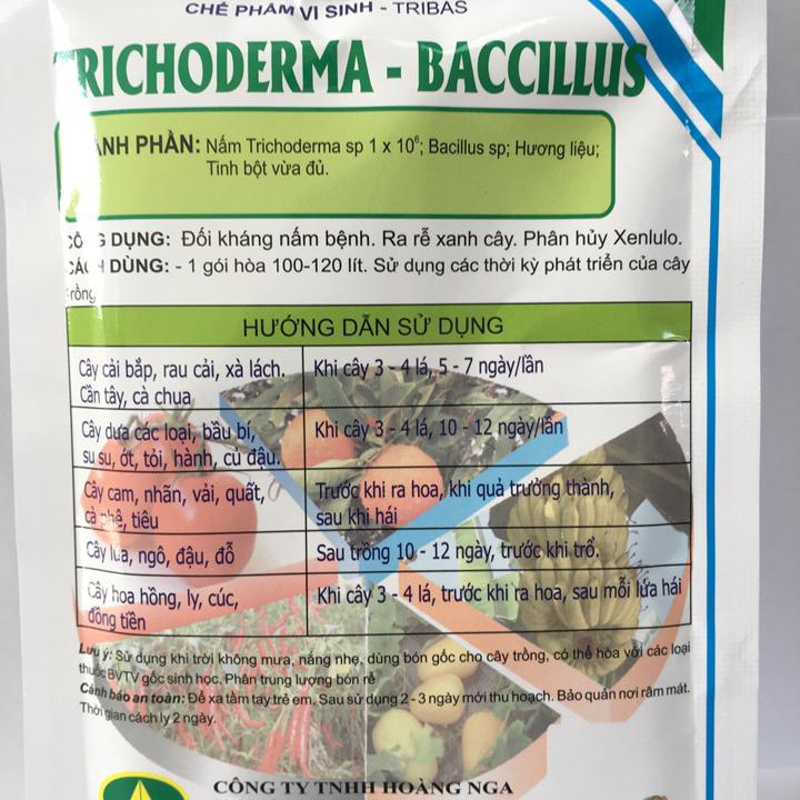 Phân hữu cơ vi sinh Trichoderma Bacilius gói 100g. Chuyên xử lý phế thải, chất hữu cơ và nấm đối kháng.Qui cách sản phẩm: