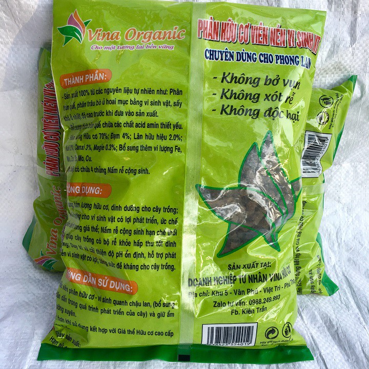 Phân hữu cơ viên nén vi sinh KT chuyên dùng cho phong lan gói 1kgThành phần: