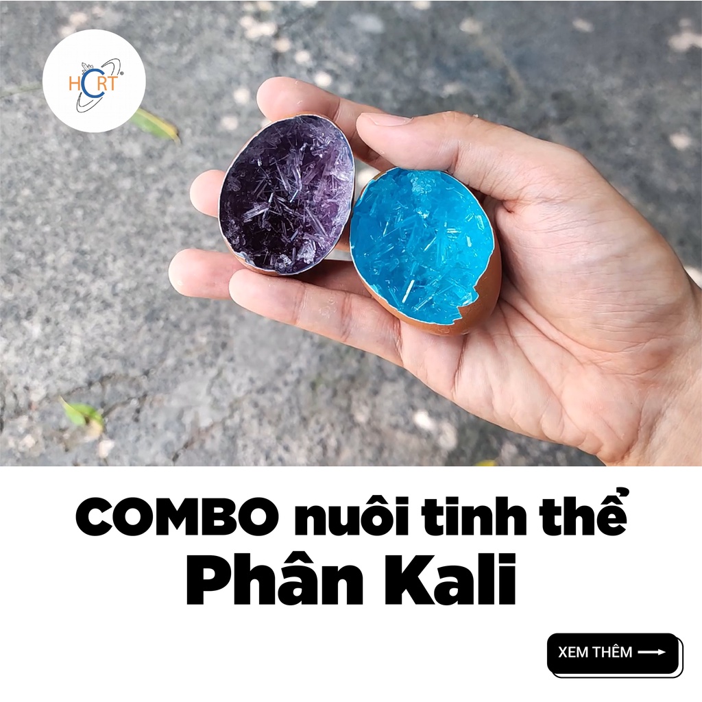 Với Combo Phân Kali - 250g thì các bạn có thể nuôi được mẻ tinh thể trong vỏ trứng ạ