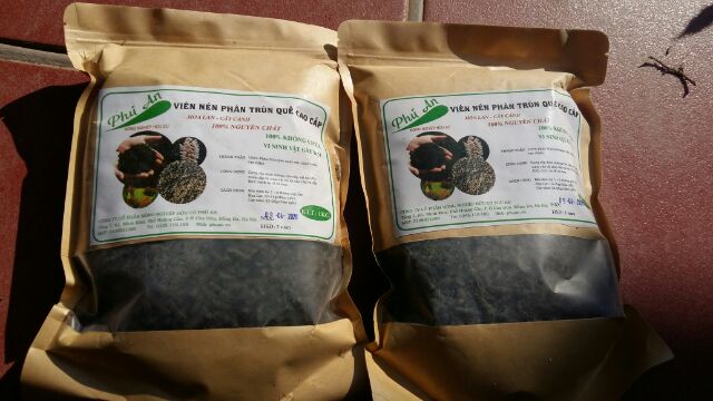 Phân nén trùn quế cao cấp 100% không chứa các vi sinh vật gây hại.Phân được đóng trong túi bìa trọng lượng 1kg.