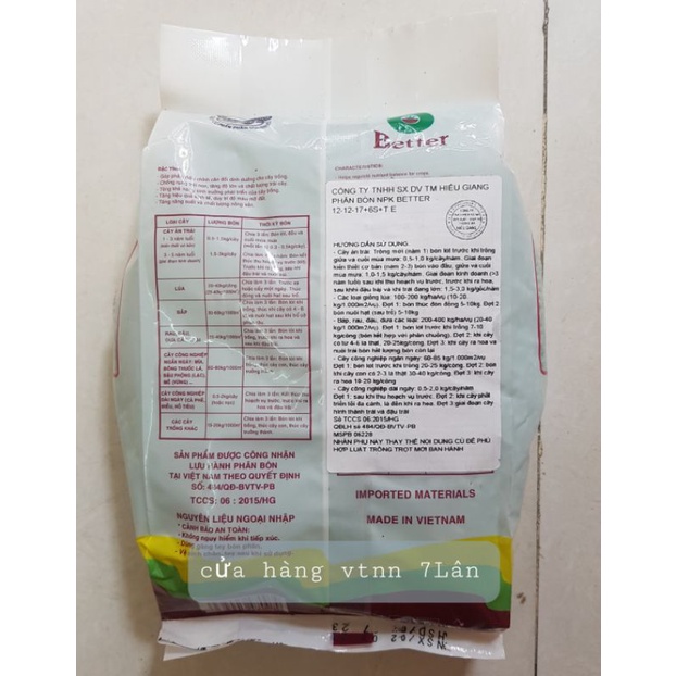 Nhà cửa & Đời sống > Làm vườn > Phân bón || Phân NPK xanh 12-12-17+6s+TE 1kýCòn hàng