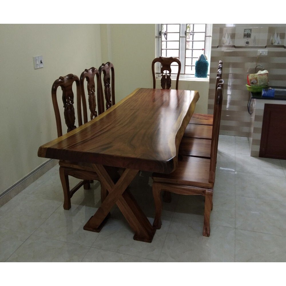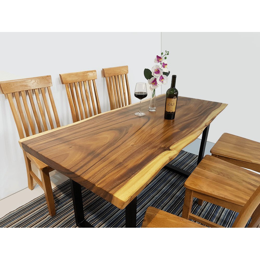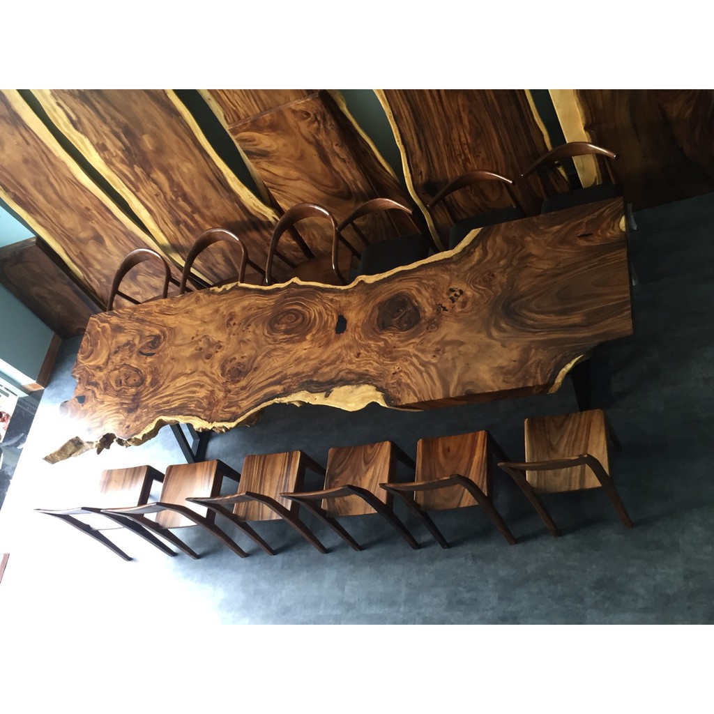 Gỗ me tây nguyên khối là gỗ được cắt xẻ trực tiếp từ thân cây không bị cắt ghép hoặc nối mà là một bề phẳng nguyên tấm. Vì vậy, mang lại giá trị thẩm mỹ cao độ bền lâu dài và đặc biệt là rất dễ vệ sinh. Gỗ me tây nguyên khối này có thể sử dụng làm bàn trà phòng khách, bàn ăn, bàn làm việc …