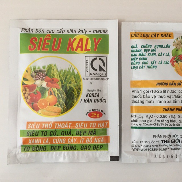 Giới thiệu Phân Siêu Kali 25gr - Hoa, củ, quả siêu to, đẹp mã, xanh lá