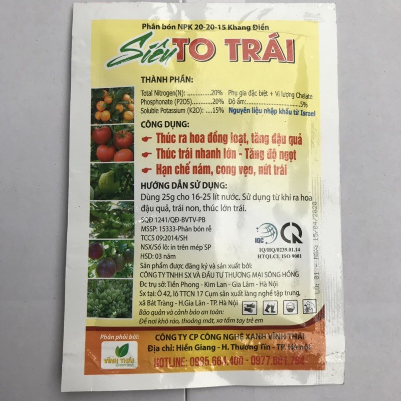 Nhà cửa & Đời sống > Làm vườn > Phân bón || Phân siêu to trái Npk 13-13-13 + TE Vĩnh Thái 30gCòn hàng