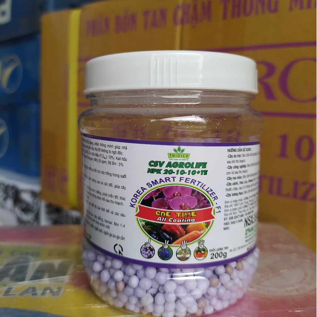Giới thiệu Phân Tan Chậm Hàn Quốc (200g), Phân Bón Thông Minh NPK 20-10-10+TE cho hoa lan, hoa hồng và cây kiểng