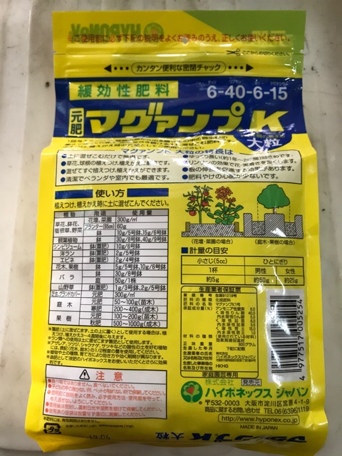 Nhà cửa & Đời sống > Làm vườn > Trang trí vườn || PHÂN TAN CHẬM NHẬT MAGAMP - PLUS K - Tỉ lệ : 6-40-6 -15: túi - 600g.Còn hàng