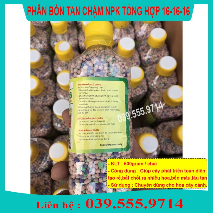 Phân tan chậm NPK tổng hợp 16-16-16 chuyên dùng cho hoa, cây cảnh - chai 500gram