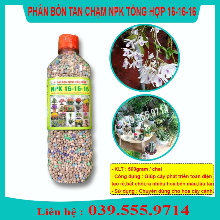 Giới thiệu Phân tan chậm NPK tổng hợp 16-16-16 chuyên dùng cho hoa, cây cảnh - chai 500gram
