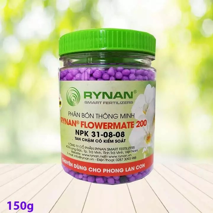 Giới thiệu Phân Tan Chậm Rynan 200 lọ 150g, Phân Bón Thông Minh NPK 31-8-8+TE, chuyên dùng Phong Lan, Hoa Kiểng