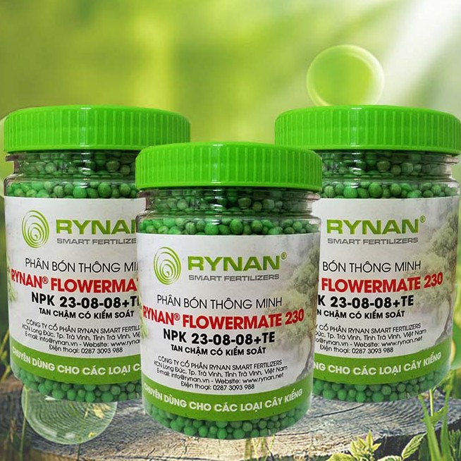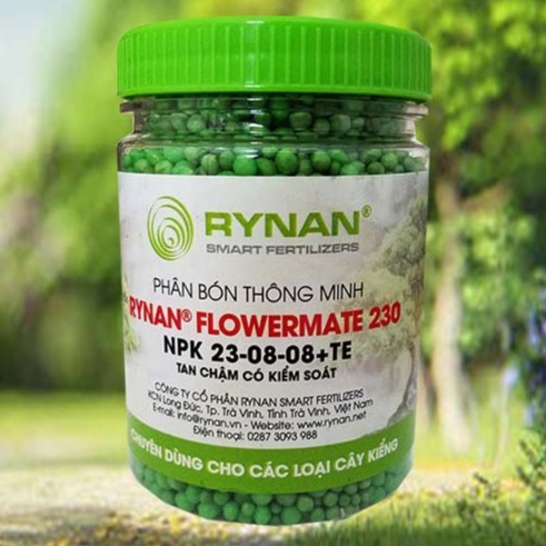 Phân Bón Thông Minh RYNAN FLOWERMATE 230 - Phân Bón Tan Chậm - Phân Bón NPK 23-8-8+TE 150gPhân bón thông minh 230 chuyên dùng cho hoa Lan, cây kiểng, hoa lan và bon sai.