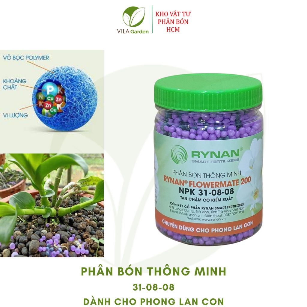 PHÂN BÓN THÔNG MINH RYNAN FLOWERMATE 200 NPK 31 - 08 - 08 TAN CHẬM CÓ KIỂM SOÁT HỦ 150G
