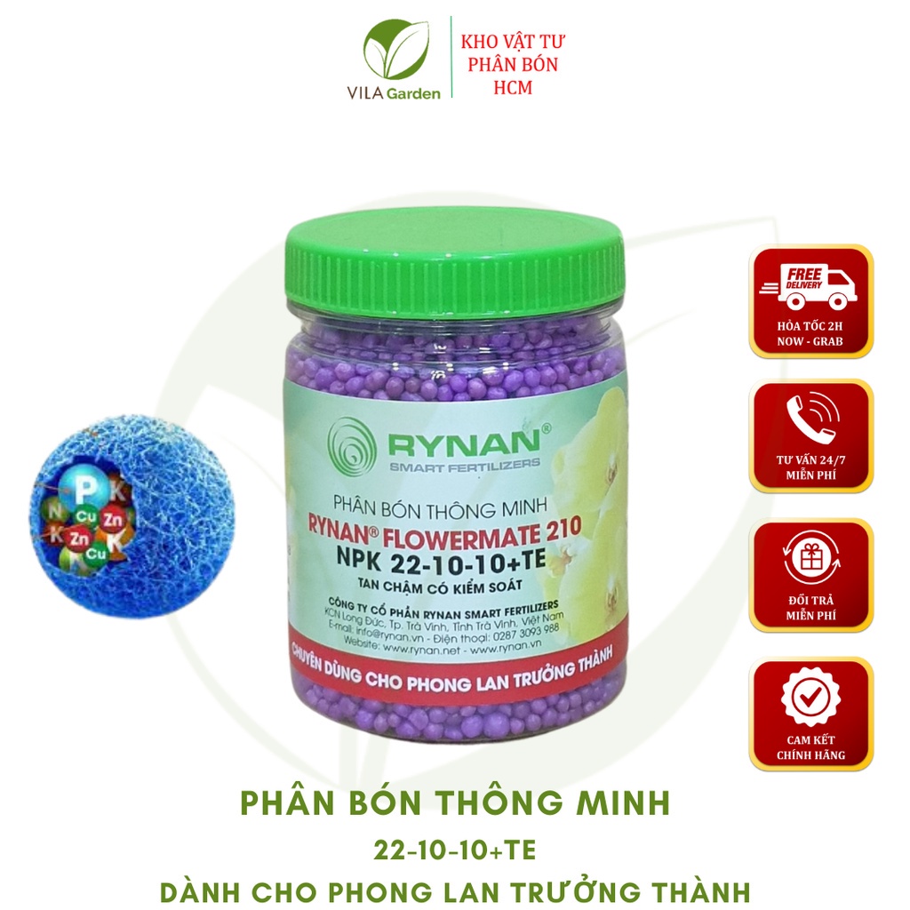 Giới thiệu Phân Tan Chậm RYNAN FLOWERMATE 210 lọ 150g, Phân Bón Thông Minh NPK 22-10-10+TE