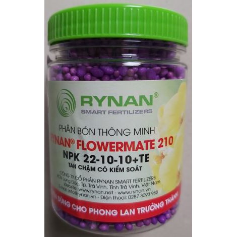 Phân Tan Chậm Thông Minh Rynan Flowermate 210 (Hủ) - Dùng Cho Phong lan và cây kiểng có hoa, Phong Lan Thời Kỳ sau ra hoa- NPK 22-10-10+CHITOSAN dùng vào giai đoạn cây sau ra hoa, giúp dưỡng cây, phục hồi cây sau mùa sinh sản, kích mầm mới, nuôi mầm cho vụ tiếp theo.