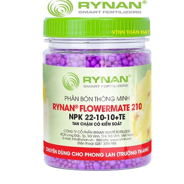 Giới thiệu Phân Tan Chậm Thông Minh RYNAN 210 (150g), Phân NPK 20-10-10+TE dùng cho hoa lan, cây kiểng