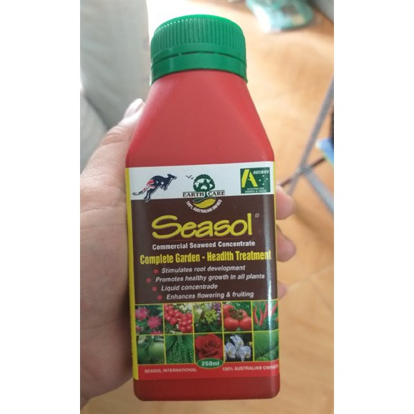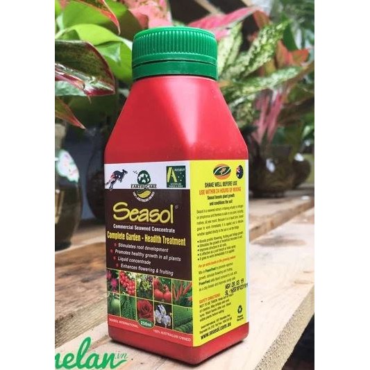Phân bón lá hữu cơ Seasol được nhập khẩu nguyên liệu 100% từ Australia với thành phần chính là tảo bẹ nâu úc chứa hàm lượng kích thích tăng trưởng tự nhiên và các thành phần đa, trung và vi lượng.Seasol đươc sản xuất theo công nghệ chiết xuất từ tảo bẹ nâu nên giàu auxin và các nguyên tố vi lượng hữu cơ tự nhiên giúp các loại cây trồng ra nhiều rễ, đẻ nhiều nhánh. Với đặc tính mát do vậy Seasol rất thích hợp cho các loại hoa lan, hoa hồng và các loại hoa, cây cảnh.