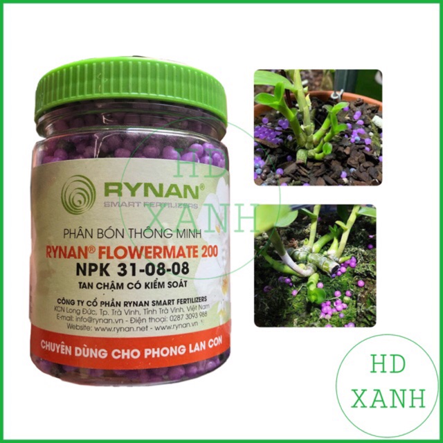 * RYNAN 200 ( NPK 31-08-08 ): Chuyên dùng cho hoa phong lan lúc mọc mầm và trưởng thành.