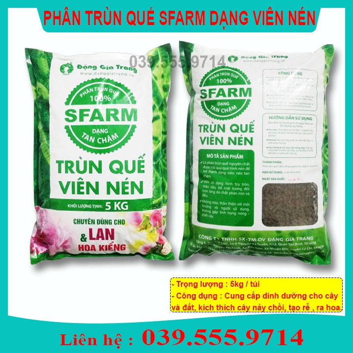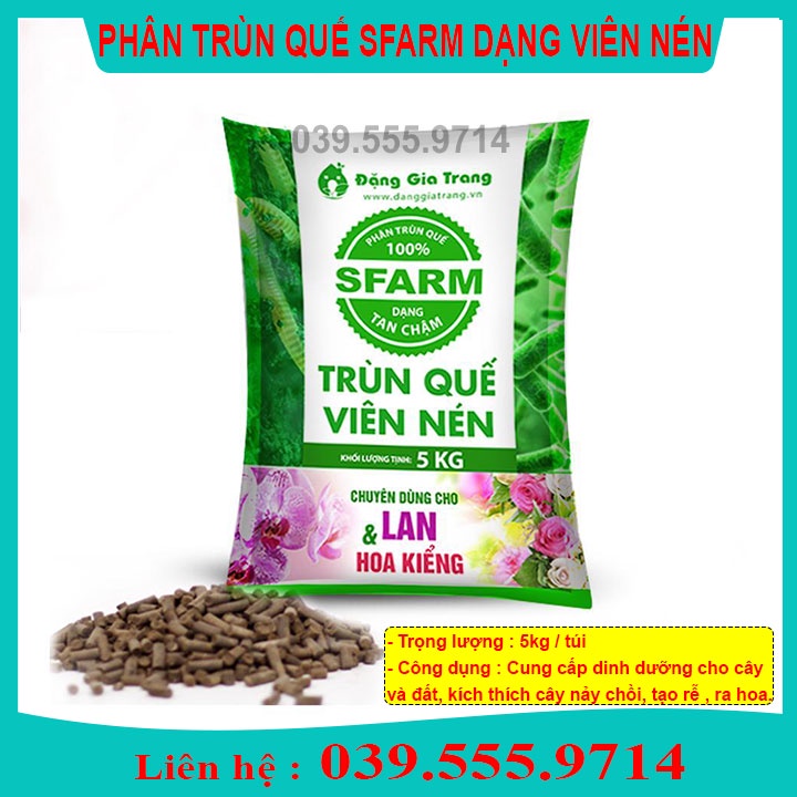 Giới thiệu PHÂN TRÙN QUẾ DẠNG VIÊN SFARM TAN CHẬM 5KG CHUYÊN DÙNG CHO HOA LAN CÂY CẢNH