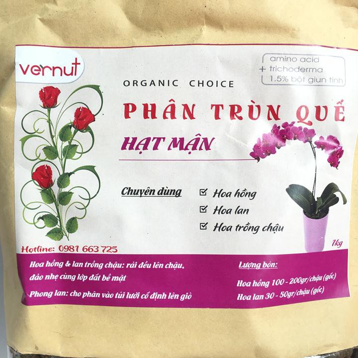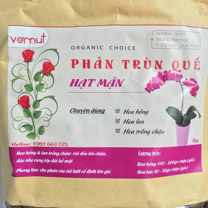 PHÂN TRÙN QUẾ HẠT MẬN CAO CẤP VENUT TÚI 1KG CHUYÊN DÙNG CHO HOA PHONG LAN, HOA CẢNH.Chuyên dùng cho Hoa Hồng, Hoa Lan..