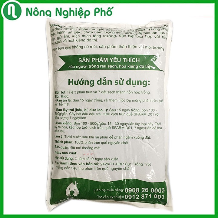 MÔ TẢ PHÂN TRÙN QUẾ HỮU CƠ SFARM CHUYÊN DÙNG CHO RAU SẠCH VÀ HOA KIỂNG