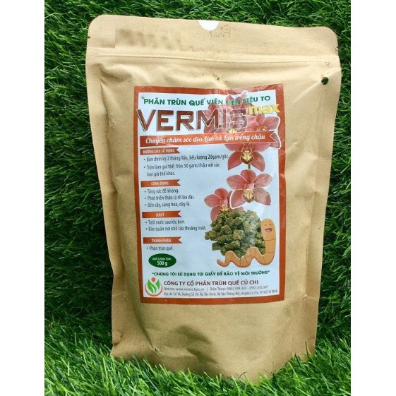Phân viên tan chậm Vermis-max là sản phẩm cung cấp mùn hữu cơ và vi sinh có lợi cho hoa lan giúp bền cây, an toàn và tăng chất lượng thân, lá, rễ trong quá trình phát triển.